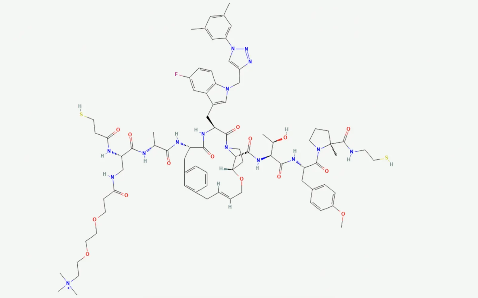 Over the last 15 years, one promising answer has emerged: synthetic macrocyclic peptides. Macrocycles — ring-shaped molecules — offer a unique “Goldilocks” modality. They’re larger and more versatile than typical small molecules, yet smaller and more drug-like than biologics. Their size and conformational flexibility enable them to intervene in protein – protein interactions previously considered “undruggable.” Examples in development include HCV treatments like grazoprevir and cardiovascular agents such as the oral PCSK9 inhibitor MK‑0616, which is entering Phase III trials (see image).