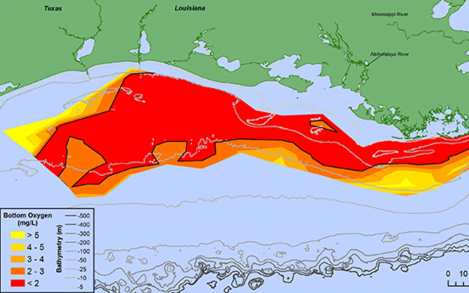 Synthetic fertilizer causes severe pollution because very little of it stays where it is supposed to. About 80% of fertilizer degrades before crops can use it, an average 20% of which becomes runoff or leaches into groundwater. In the US alone, this nutrient pollution impairs 15,000 bodies of water, 101,000 miles of rivers and streams, and two thirds of our coastlines. Nutrient pollution causes algal blooms toxic to humans and marine animals. Decaying algal blooms also create vast “dead zones” devoid of aquatic life because their decomposition absorbs oxygen from the water. The Gulf of Mexico hosts the largest of these zones, due to runoff from the 31 states in the Mississippi River Basin. This flood of fertilizer kills off nearly every living creature in 5,840 square miles every summer.