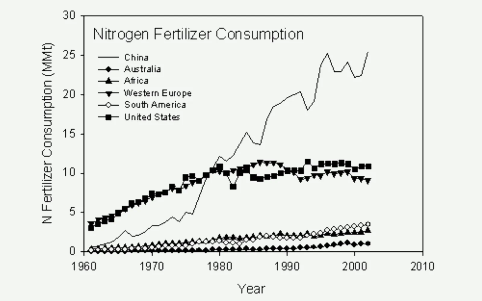 Unfortunately, as fertilizer use continues to increase, its efficiency has dropped significantly because farmers systematically overapply fertilizer – despite its diminishing returns – as they pursue maximum crop yield. The percent of nitrogen fertilizer converted to harvested crops has slipped from 68% in the early 1960s to 47% today. The rest becomes pollution.